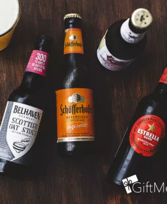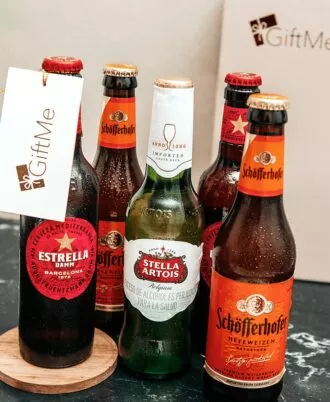 Contenido: Selecciona 6 botellas entre: 2 cervezas Estrella Damn (España) 2 cervezas Schofferhoffer (Alemania) 2 cervezas Belhaven (Escocia) 2 cervezas Stella Artois (Belgica) Gift Me Box Hang Tag