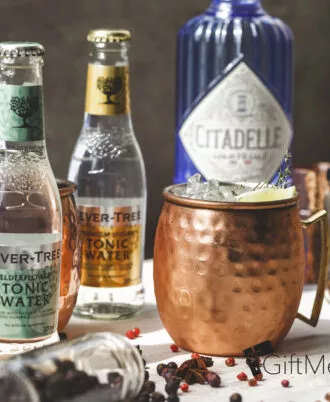 Contenido: Gin Citadelle 750ml (Francia) 2 Tonic Water – Fever Tree 2 Copper Mugs Gift Me Box Hang Tag Gift Me
